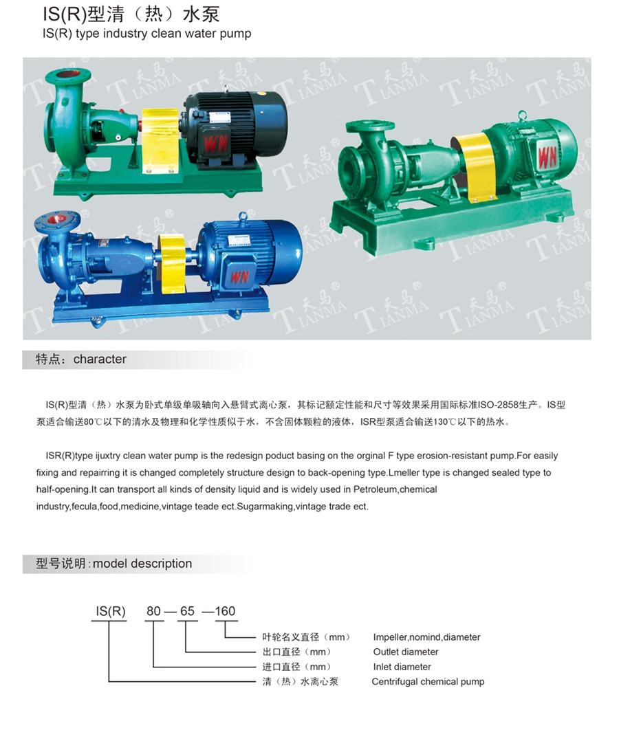 IS(R)型清(熱)水泵 質(zhì)量穩(wěn)定:實(shí)行全過程質(zhì)量監(jiān)控,多方位檢測! 合理的價格:有效的內(nèi)部成本控制,減少開支,為客戶著想! 交貨快:完善的生產(chǎn)線,充足的庫存,縮短交貨時間! TEL:0550-7029888 FAX:0550-7029688 EMAIL:987655188@qq.com